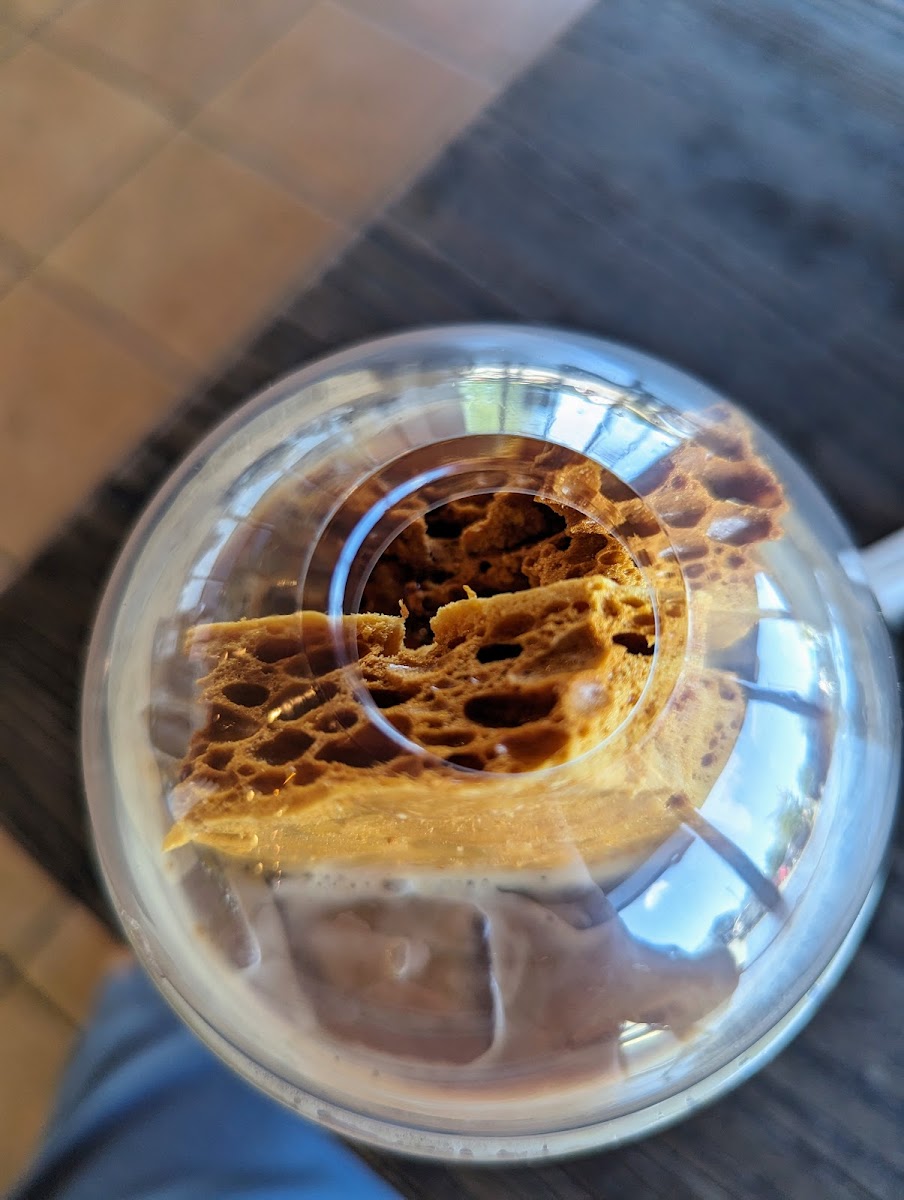 Update September 2025: The pumpkin spice latte and lemon bar are both excellent! Original review: The iced Dalgona Honeycomb latte was beyond amazing. That smokey, carmely, flavor the Dalgona Honeycomb toffee topping adds as it melts into the drink is so complimentary to the rich and bold espresso in the latte...I can't stop talking about it since I tasted it. Can't wait to come back!